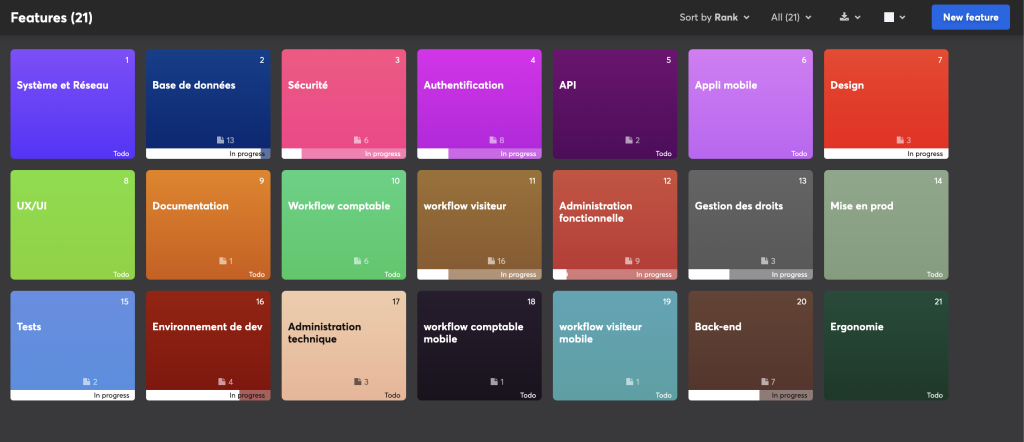 Les stories sont organisées par features (ex : sécurité, authentification, paiement, etc.), c’est-à-dire des catégories.